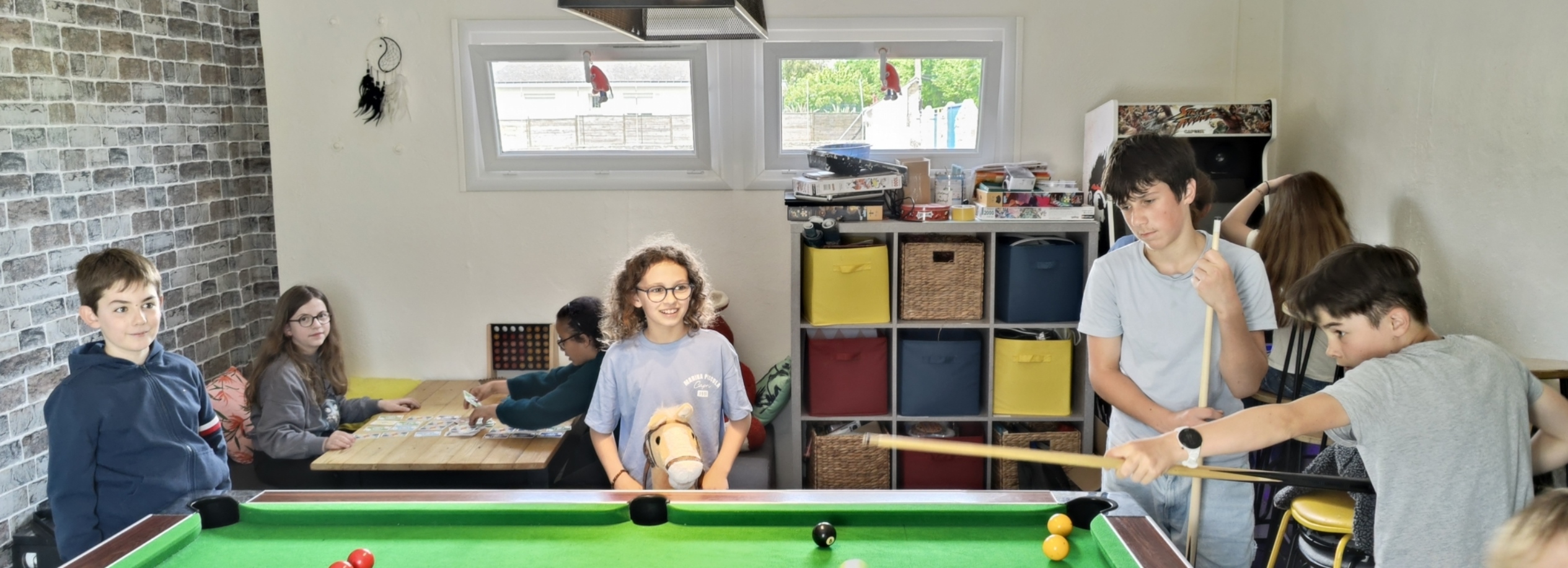 Les jeunes ont accès à des jeux en intérieur et en extérieur, des jeux de société, des jeux vidéos...